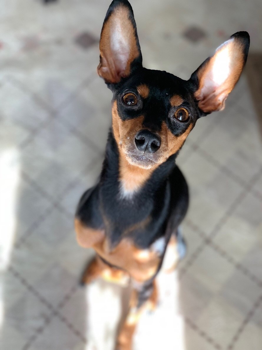 ミニピン,10歳,男の子,お散歩とお昼寝が好き。