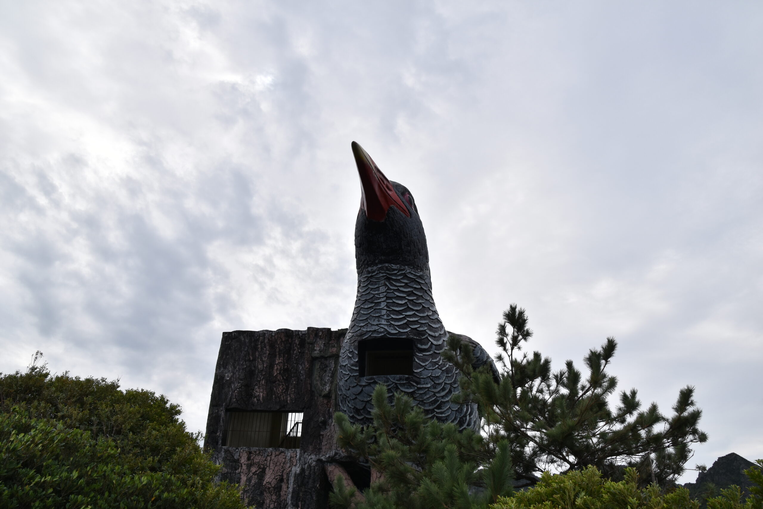 辺戸岬の近くにはヤンバルクイナ展望台があって巨大な鳥の形をしており,夜中に行くと少々不気味である。